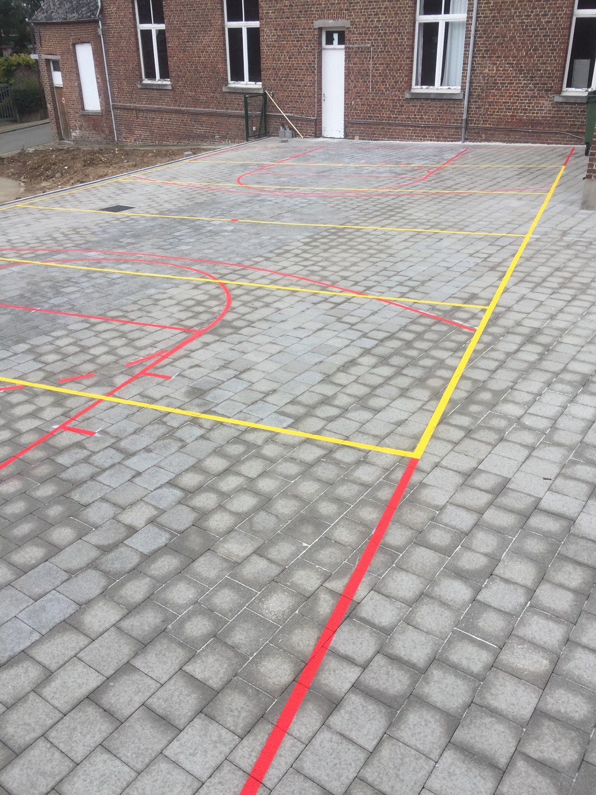 Daarnaast zorgden wij voor een nieuw afwatering- en rioleringssysteem en het aanbrengen van de lijnen voor een nieuw voetbal- en basketbalterrein.